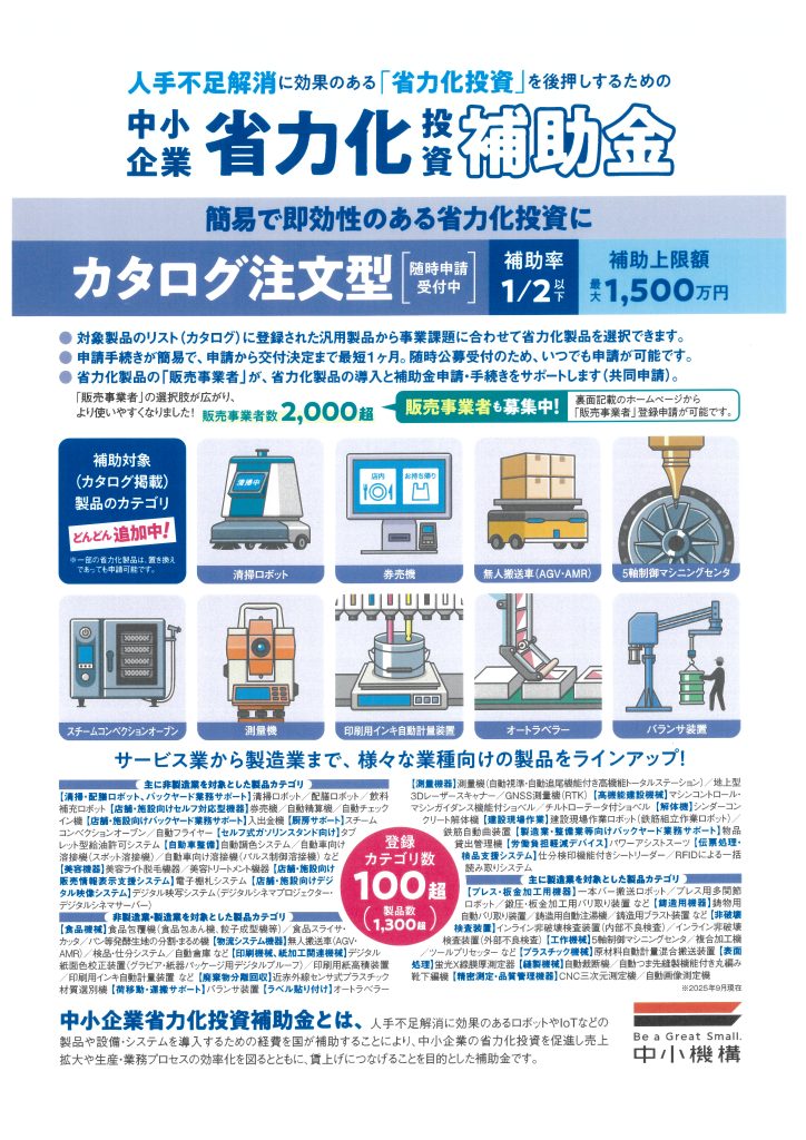 中小企業省力化投資補助金(カタログ注文型)は随時受付 継続中